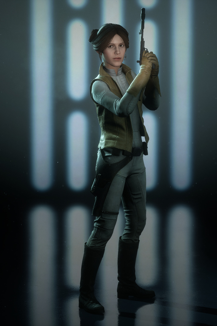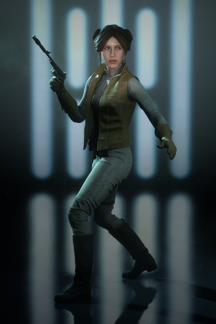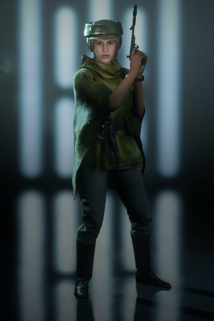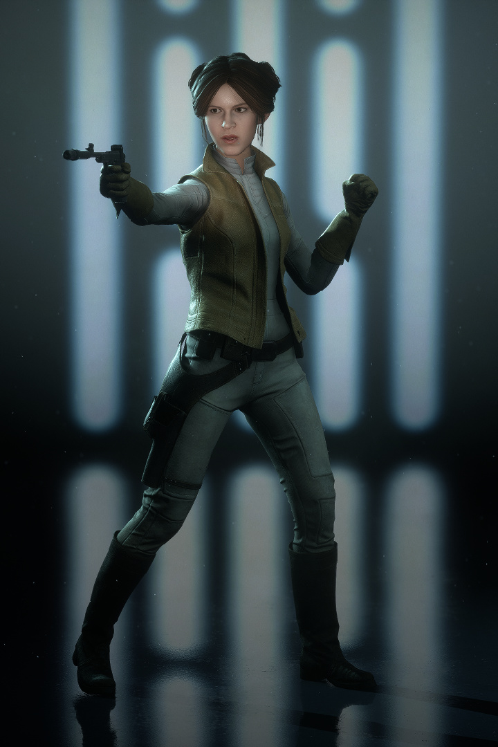 レイア・オーガナは味方集団の要となって活躍する。分隊シールドを設置して守りを固め、サーマル・デトネーターで敵を逃げ惑わせ、近距離では専用のE-11で敵を打ち倒すことができる。
