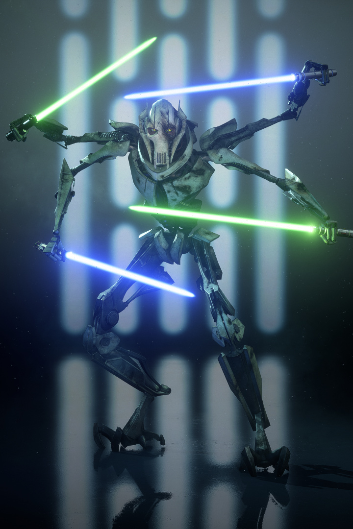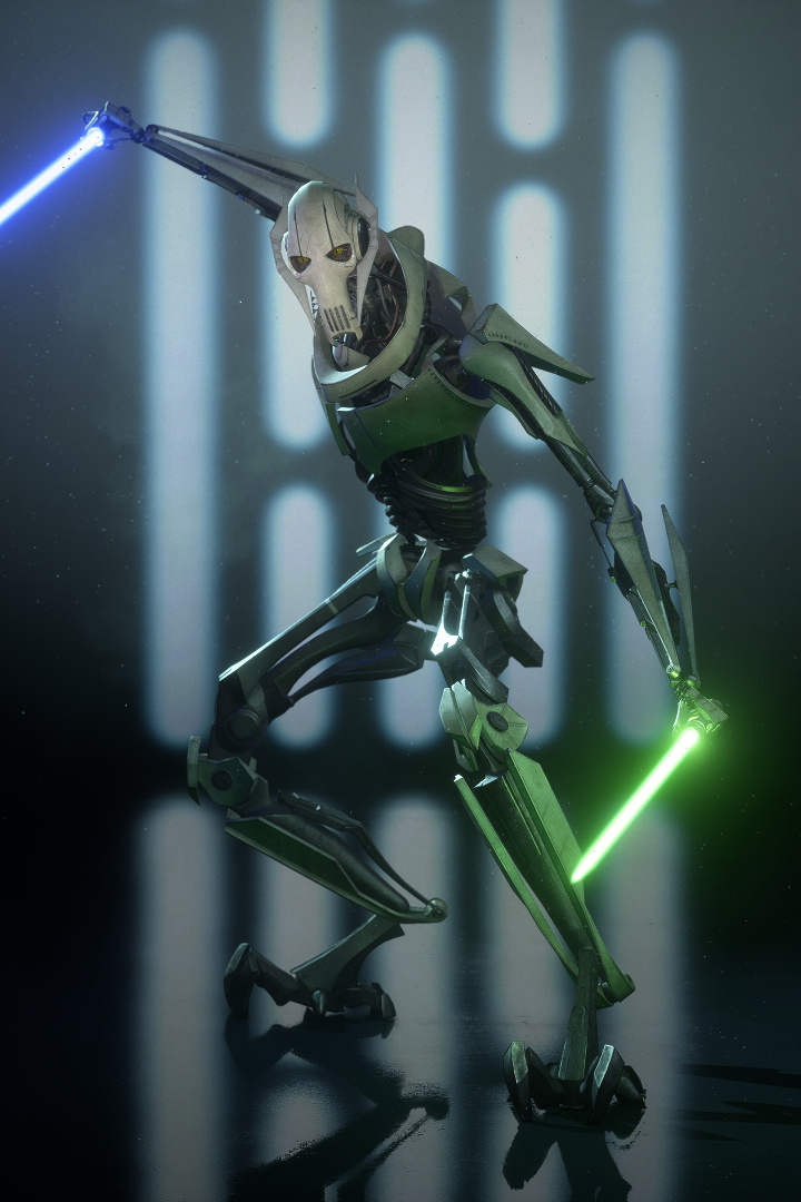 グリーヴァス将軍は分離主義勢力軍の最高司令官であった。その以前は惑星カリー出身の軍閥の盟主として恐れられていた。サイバネティクスにより大きく改造された肉体により、敵を圧倒する。
