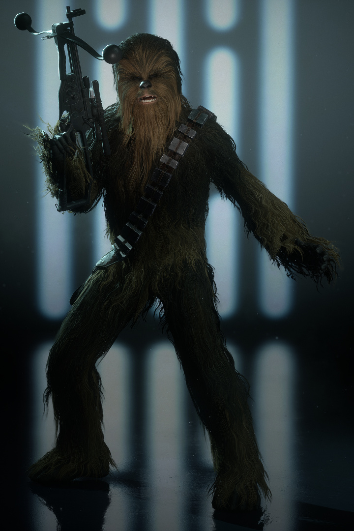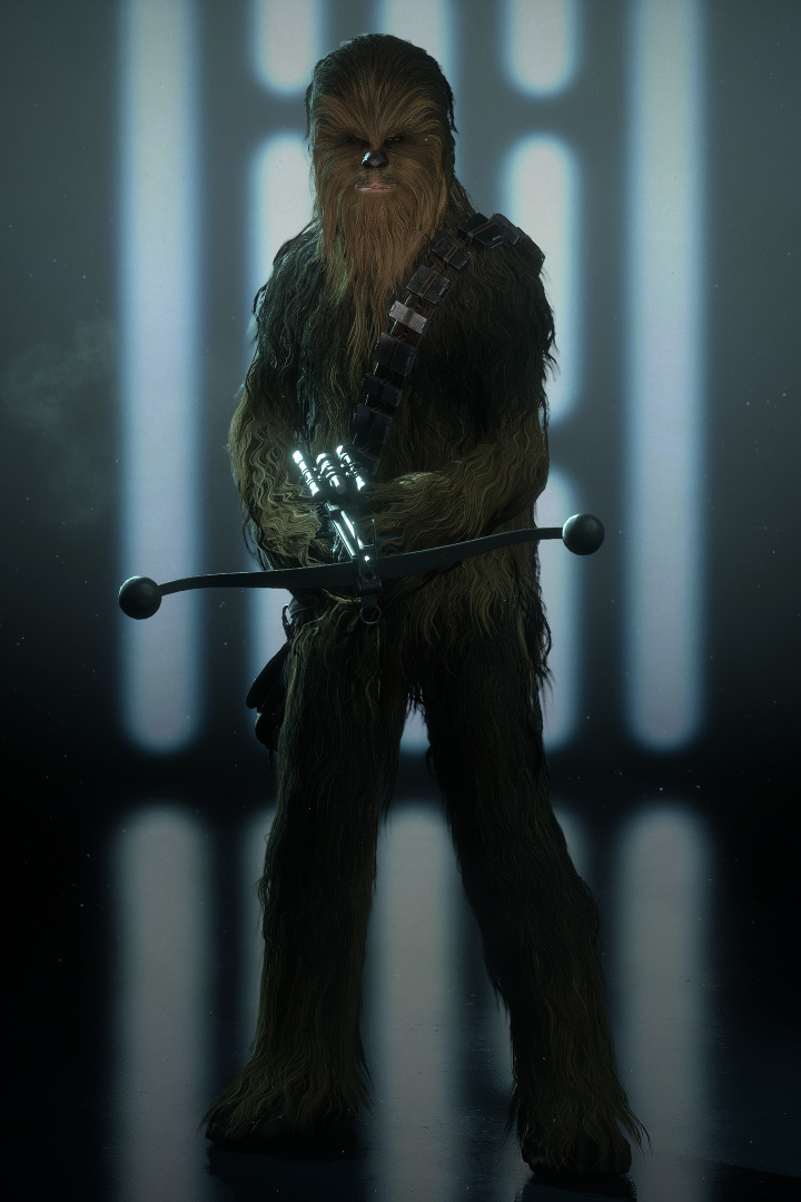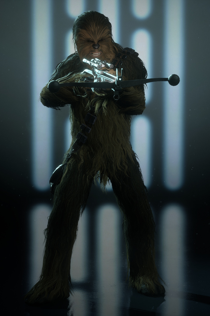 チューバッカは、ボウキャスターからチャージされたボルトを放ち攻撃するだけではなく、優れた腕力で、近距離の敵を圧倒できる。また、強力な武器の攻撃に耐えられるタフさも備えている。