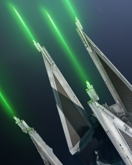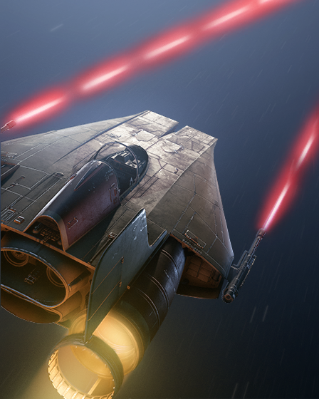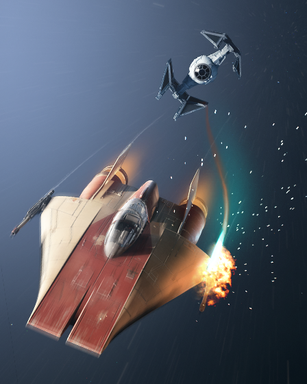 強化されたスピードと4門のレーザー砲を駆使して反乱軍のスターファイターを追い詰める。