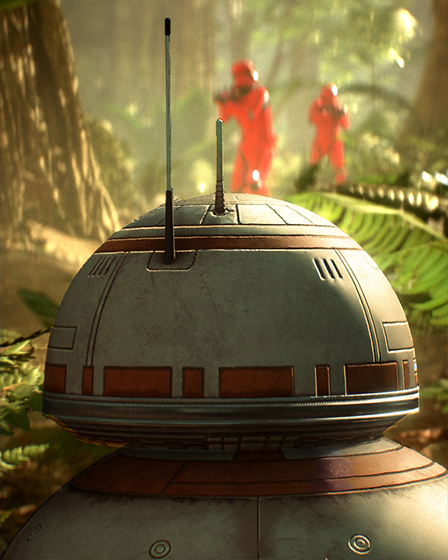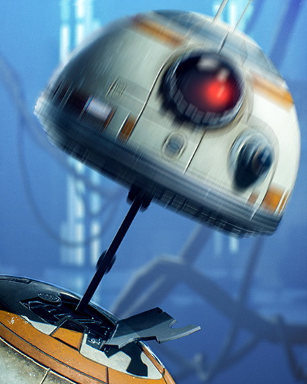 勇敢にして器用なアストロメク・ドロイドBB-8は、いくつもの危険なレジスタンスの任務をポー・ダメロンとともに潜り抜けてきた。その愛らしい見た目にも関わらず、何度も友人たちの危機を救って、「ドロイドを甘く見るな」の格言を体現している。