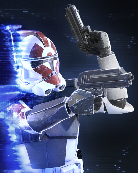 特殊偵察コマンドーは2丁のブラスター・ピストルと共和国軍の強力なガジェットを装備したトルーパーで、果敢な戦いぶりで知られる。